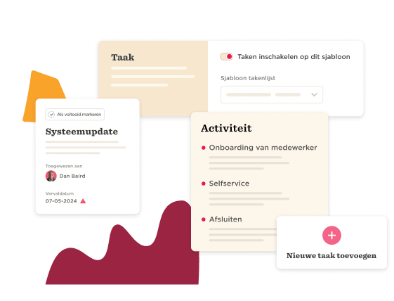 Bespaar HR uren aan administratie en zorg dat geen enkel detail over het hoofd wordt gezien met de geautomatiseerde werkprocessen van Bob. Maak met een paar muisklikken takenlijsten om belangrijke gebeurtenissen voor medewerkers af te handelen, zoals preboarding, onboarding en offboarding. Wijs taken toe aan alle relevante belanghebbenden en vraag goedkeuring bij elk stadium van het proces. Blijft iets hangen, voeg dan persoonlijke e-mails, meldingen en herinneringen toe om alles weer op de rit te krijgen.