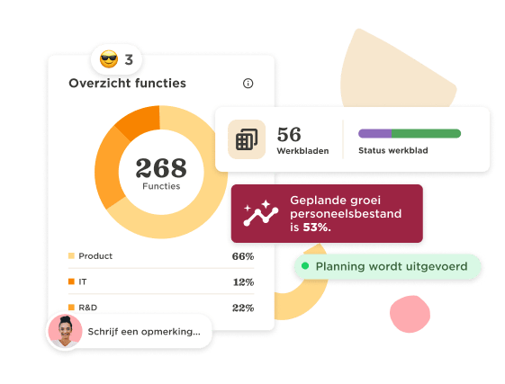 De toegang die je hebt tot gegevens over je huidige personeelsbestand, zoals het verloop van wervingsprocedures, de groei van je bedrijf, de interne mobiliteit en het invullen van openstaande vacatures, geeft je inzichten die je beslissingen over de werving van nieuwe medewerkers kan beïnvloeden. Doordat alle informatie over personeelsplanning op één centrale plek staat, kun je een vliegende start maken.