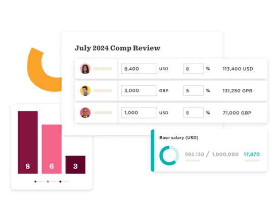 Simplify the allocation of base pay, bonus, and equity plans across your international teams through multiple currency management, localized currency views, and local salary benchmarks*. Define role permissions and perform bulk actions to ease the process.