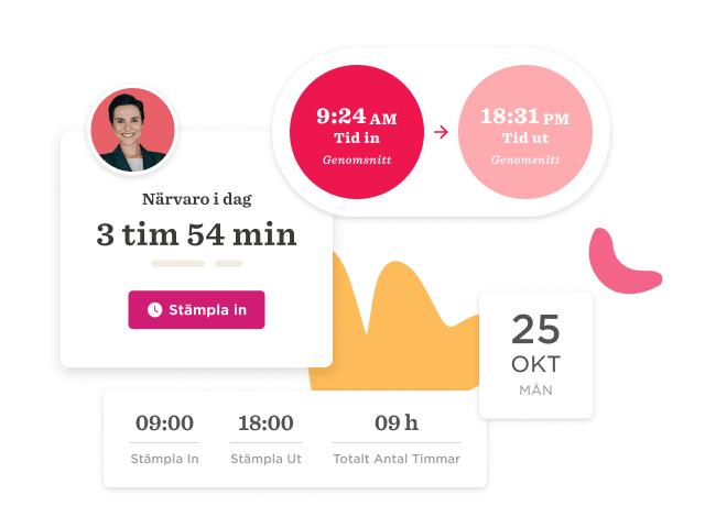 I Bobs modul för tid och närvaro är det enkelt för dina medarbetare att logga sina timmar. De behöver bara klicka på knapparna för ”stämpla in” och ”stämpla ut”.
