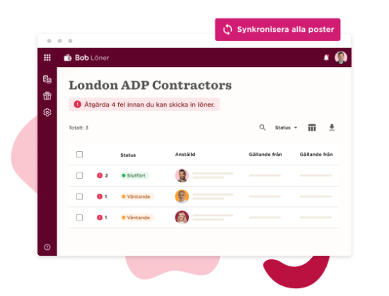 Förenkla lönesystemet med Bobs lönehubb – en centraliserad översikt som automatiskt uppdaterar lönedata i realtid. För att processen ska bli ännu enklare har Bob funktioner för visuell uppföljning och aviseringar som hjälper dig att verifiera löneändringar när du är redo för lönekörningen.
