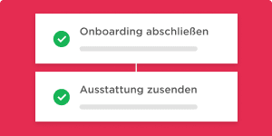 Deine Mitarbeitenden sollen ab dem ersten Tag klare Aufgabenstellungen haben und positive Erfahrungen machen, ganz gleich, ob sie vor Ort oder remote arbeiten. Gestalte ihre Erfahrungen persönlicher, indem du Workflows an die individuellen Gruppen in deinem Unternehmen anpasst. Noch dazu kannst du Aufgaben mit persönlichen Meilensteinen von Teammitgliedern oder unternehmensweiten Initiativen verknüpfen und verschiedenen Stakeholdern zuweisen, sodass nichts übersehen wird.